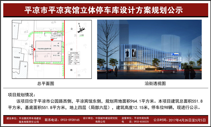 平凉宾馆等3处立体停车库设计方案规划公示