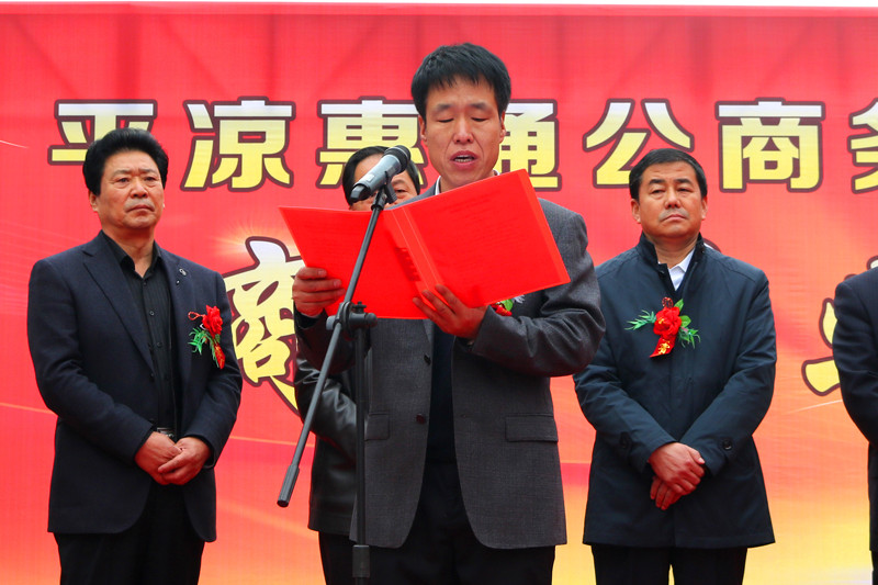 庆典活动上,平凉市城乡建设投资有限责任公司副总经理、平凉惠通公商务用车服务有限公司董事长魏显文就公司开业正式运营致辞,市发改委副调研员朱强、平凉市级机关公务用车服务中心主任牛彦平分别代表市车改领导小组办公室、市机关事务管理局讲话,向公司开业表示祝贺。平凉市城乡建设投资有限责任公司党委书记、董事长马千里,甘肃东部运输集团有限责任公司党委书记、董事长胡高晓为平凉惠通公商务用车服务有限公司揭牌。