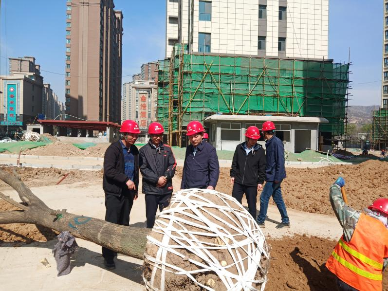 2021年4月19日,公司党委委员、副总经理魏显文对平凉一中新校区及御景华府商品房建设项目绿化施工进行了现场督查,查看了苗木质量、施工技术,听取了现场负责人对施工情况的汇报,并在御景华府项目工地召开了种植土方回填、微地形堆筑、苗木进场栽植施工现场会议。