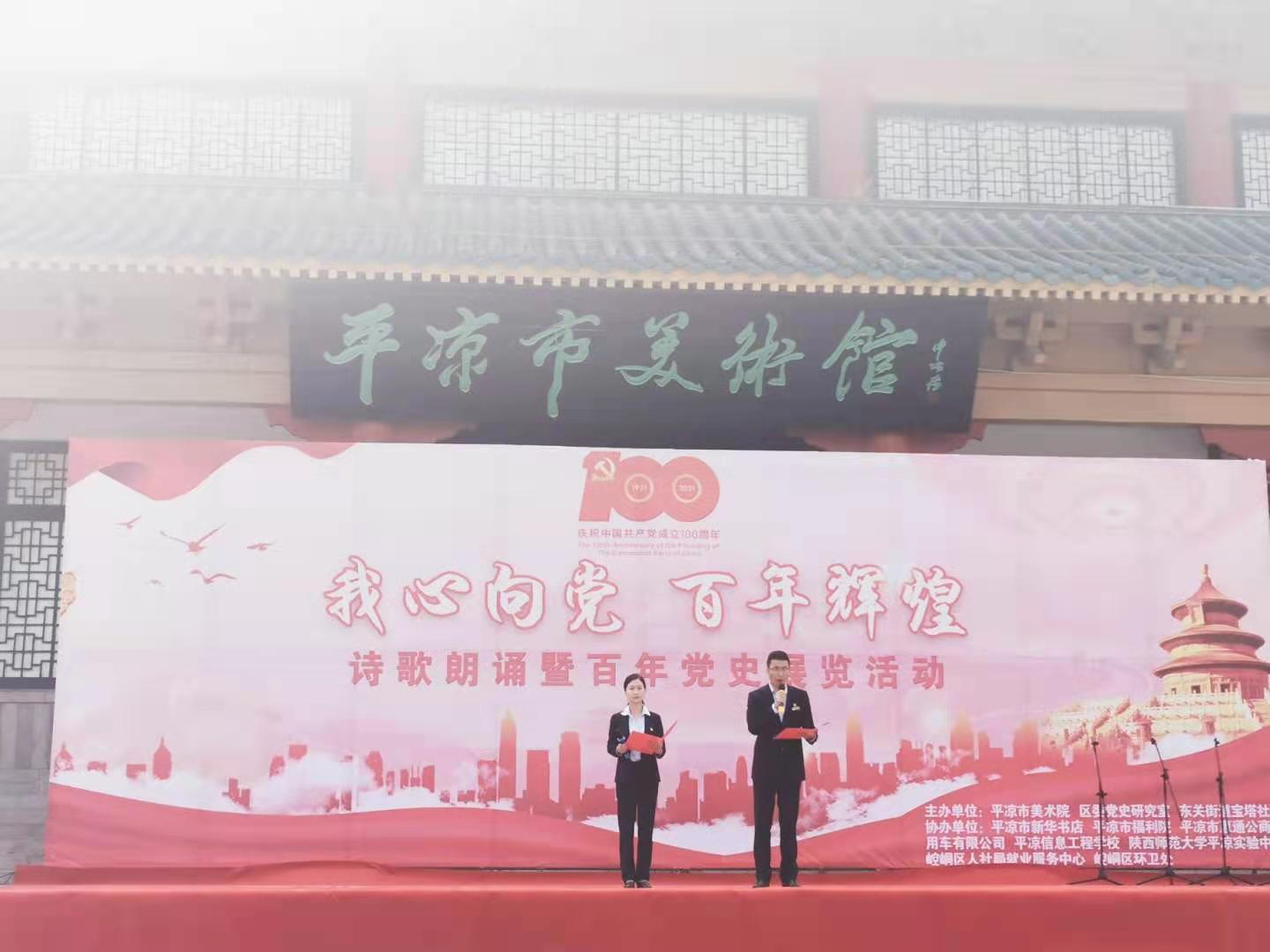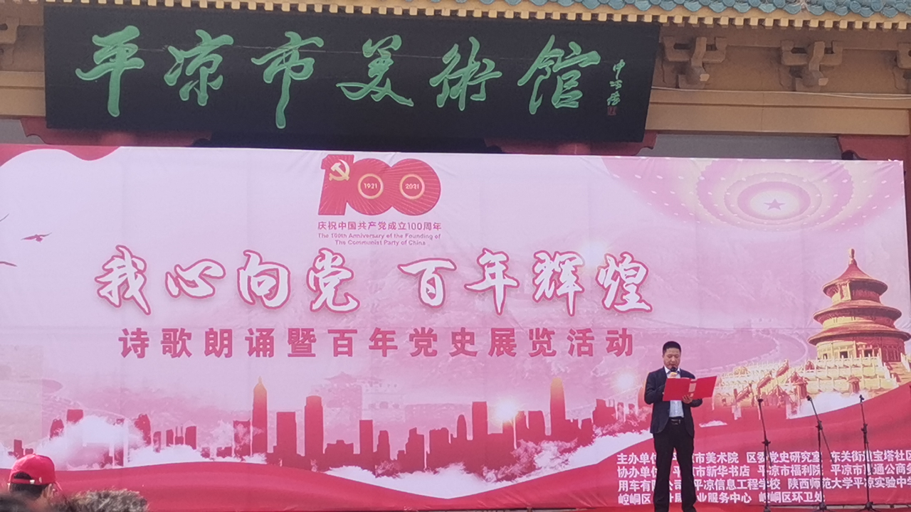 为庆祝中国共产党建党100周年,回顾党的光辉历程,讴歌党的丰功伟绩,引导平凉城乡投(惠民)公司党员、职工深刻了解党的光辉岁月、感悟党的初心使命、领会党的创新理论、传承党的红色基因。5月12日,市城乡投资公司党委受东关街道宝塔社区、平凉市美术馆、区委党史研究室联合邀请,组织机关第一党支部、机关第二党支部、惠通公司党支部、物业公司党支部、文化传媒公司党支部、绿化公司党支部、供应链管理公司党支部共同开展“我心向党 百年辉煌”诗歌朗诵暨百年党史展览活动。