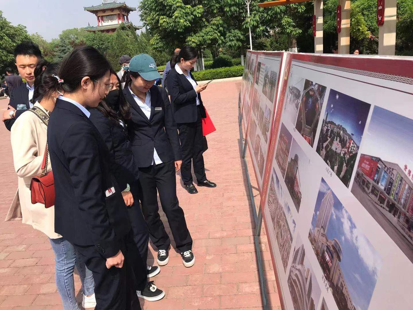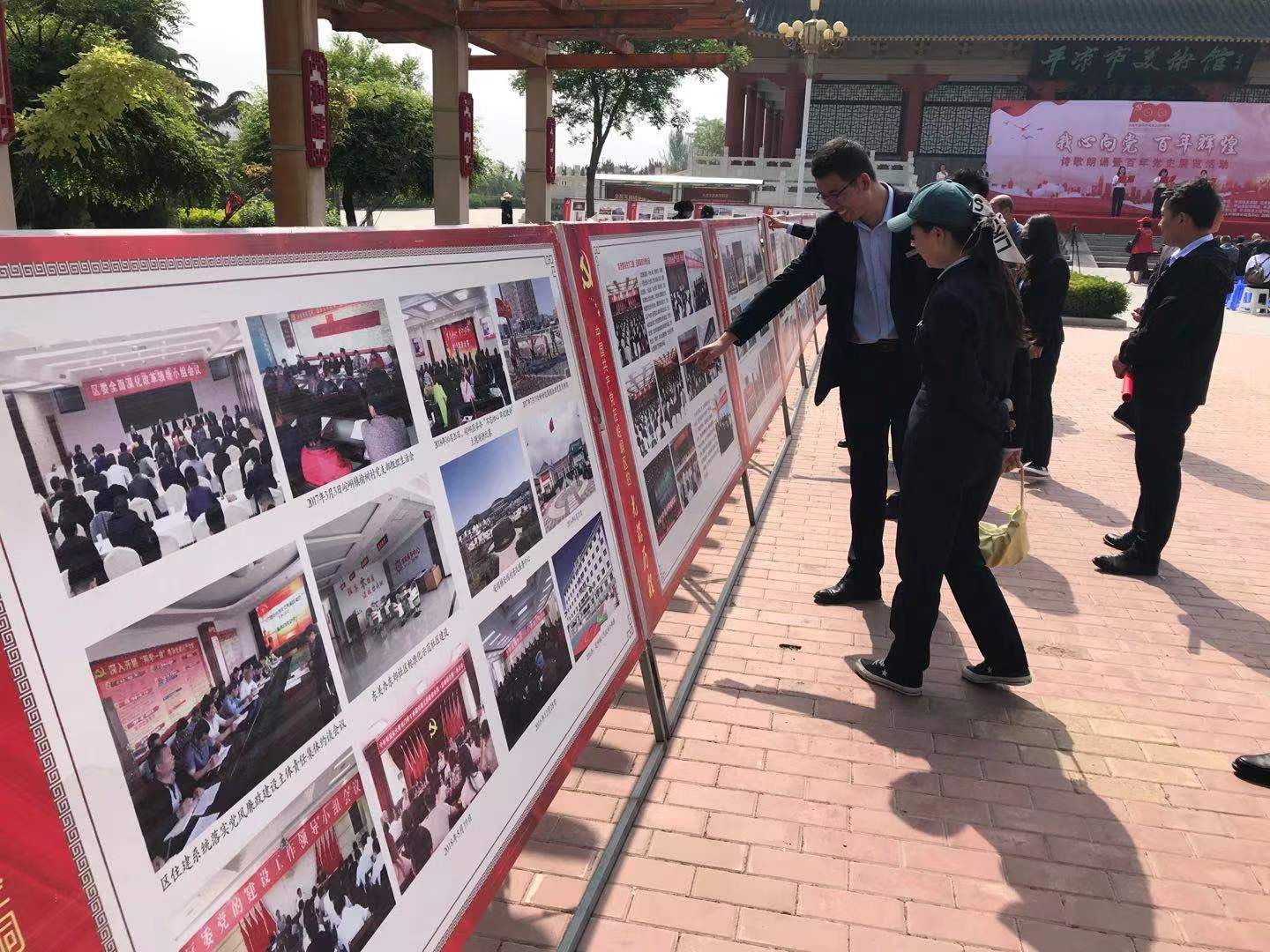 驻足观看党史展板