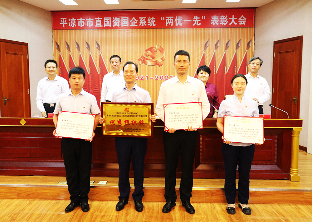 平凉城乡投(惠民)公司融资部部长耿伟同志荣获“优秀共产党员”荣誉称号;惠通公司党支部荣获“先进基层党组织”荣誉称号;党委办(办公室)副主任万新田、物业公司职员朱卉、停车场公司职员张永勇3名同志分别获得“赓续红色血脉,争当服务先锋”演讲比赛二等奖、三等奖、优秀奖;总经理助理、规划发展部部长冯永明,党委办(办公室)职员马蕊分别获得市政府国资委党史学习教育知识测试二等奖、三等奖。平凉城乡投(惠民)公司党委被市政府国资委党委表彰为市直国资国企系统党史学习教育知识测试“优秀组织奖”。
