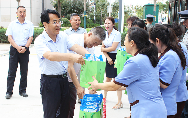 8月3日上午,平凉城乡投(惠民)公司开展“关爱一线、夏送清凉”活动。平凉城乡投(惠民)公司副总经理王徐周、郑忠军、马新平,总经济师王国太带领党委办(办公室)、公司工会工作人员,分两组前往房产公司泾河流域治理、崇文书院二期建设项目工地,物业公司所属市委、市政府、市中级法院、惠民大厦物业服务中心,停车场公司封闭停车场,惠通公商务用车公司,建筑公司双桥路苗圃,对137名工作人员进行现场慰问,把公司党委和工会对奋战在一线员工的关怀关心送到他们手中。