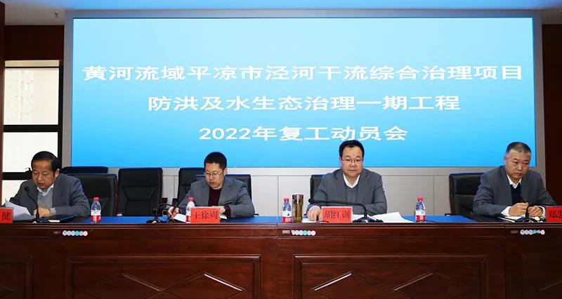 2月14日,平凉球王会网页版集团召开黄河流域平凉市泾河干流综合治理项目防洪及水生态治理一期工程2022年复工动员大会。公司党委委员、总经理胡红训出席会议并讲话,副总经理王徐周、郑忠军出席会议,总工程师高健主持会议。各相关部室,房产公司,项目设计、监理、施工单位负责人及相关人员共计60余人参加会议。