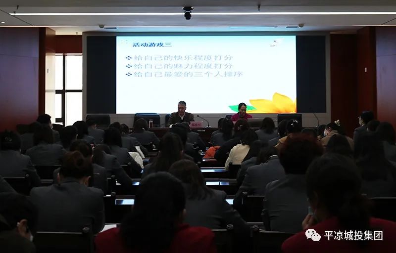 讲座邀请平凉市心理学会会长、国家二级心理咨询师、中国心理学会科普讲师、国家执业医师、高校教师、关心下一代幸福工程讲师、国家培训网沙盘游戏和绘画培训专家张素珠老师为大家授课。张素珠老师用通俗易懂、风趣幽默的语言,采用理论讲解、案例分析与现场互动相结合的方式,从多个角度,不同层面,深入浅出地对心理压力与健康的关系、不良情绪的应对策略等方面做了生动的阐述和讲解。讲座现场气氛热烈,通过提问、体验、探讨的方式,着力引导广大女职工积极展示女性魅力,热情工作、阳光生活,内强素质外塑形象,展现出新时代女性昂扬向上、积极进取、奋发有为的良好精神风貌。