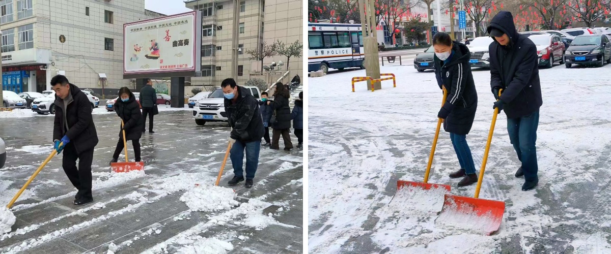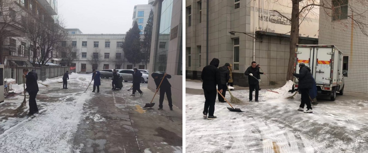 文化传媒公司全体员工快速开展铲雪除冰工作,将剧院外围平台、人行步道、车辆出入口、广场等处的积雪进行了清扫。全体员工不畏严寒、干劲十足,用最短的时间为市民清理出了“安全通道”。