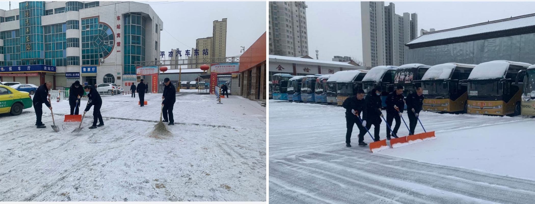 众安公司第一时间启动应急预防措施,封闭站内所有车辆并及时通过多种方式向滞留旅客随时通报信息。全体干部职工快速反应,分工合作,及时清理站前广场及院内停车场积雪,扫出一条安全出行的“绿色通道”,为广大市民平安出行保驾护航。在车辆停发期间,设立爱心岗和服务岗为旅客提供后勤服务保障,安抚旅客情绪,做好滞留旅客的解释工作。同时,众安公司还与各参营公司沟通关注路况信息,争取车辆早日恢复通行。